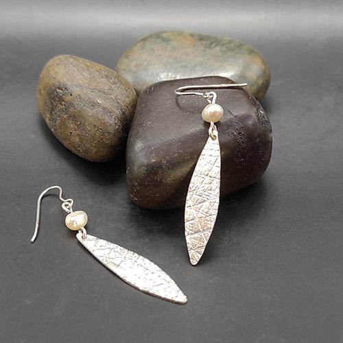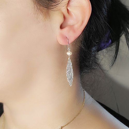 Όμορφα σκουλαρίκια φύλλο με υφή και μαργαριτάρι.
