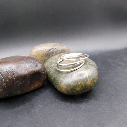 Two dainty 1mm silver rings and one hammered 1.5mm silver ring.